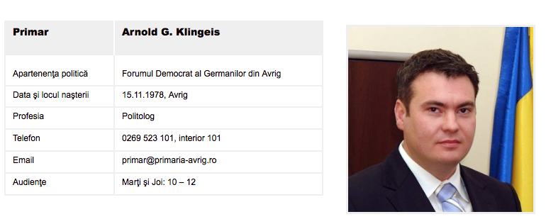 In imagini se vede cum, Arnold Klingeis, proaspat absolvent de bacalaureat (pe care numai el stie cum l-a luat) se auto-califica drept economist pe site-ul primariei.