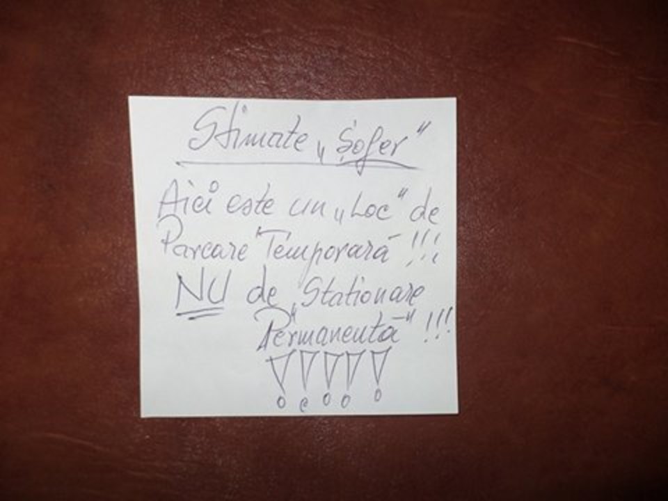 Cazul evident nu e singular fiindca un astfel de personaj exista cel putin la fiecare scara de bloc si face viata amara celor care folosesc parcarea COMUNA de pe domeniul public.