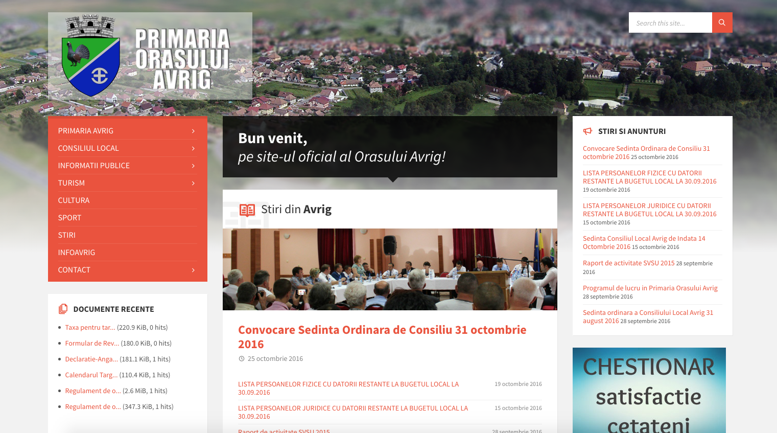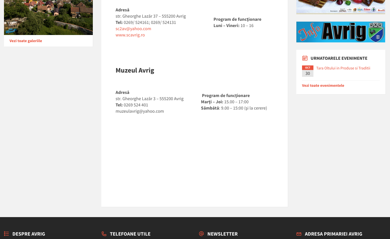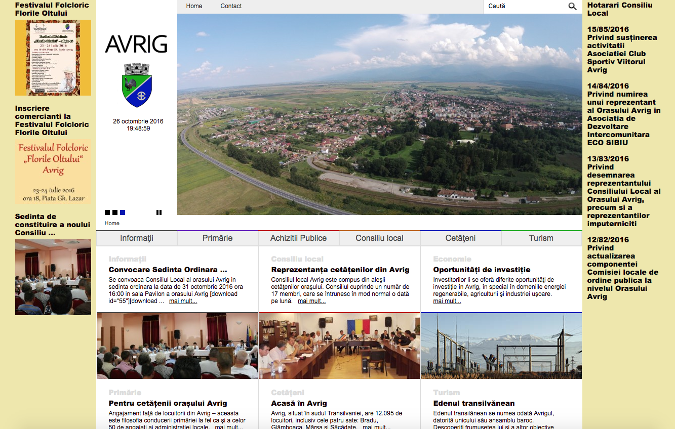Am aflat in urma cu ceva vreme faptul ca Primaria Avrig pregateste un site nou si am gasit cu aceasta ocazie si un link de preview prin intermediul caruia am putut sa analizez din punct de vedere vizual si tehnic noul site. Am pus linkul public pentru a le da si altora ocazia sa analizeze si sa-si aduca aportul daca considera de cuviinta.